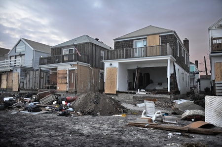 QUEENS, NY - NOVEMBER 11: Damaged houses without power at night in the Rockaway beach - Bel Harbor area due to impact from Hurricane Sandy in Queens, New York, U.S., on November 11, 2012.