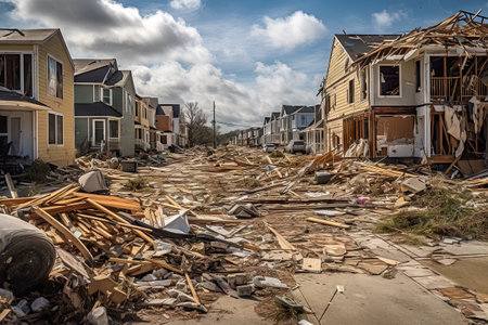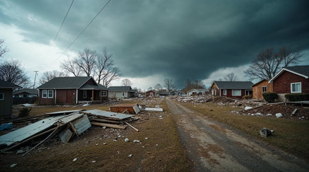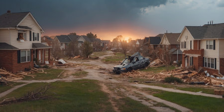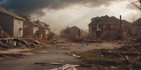 Suburban scenario devastated after tornado., generative AI