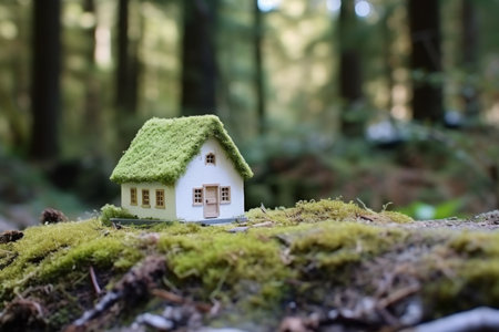 Green paper house forest sustainable eco friendly property real estate ecology craft natural creative life choice idea grass architecture planet preserving zero emissions concept climate change fight