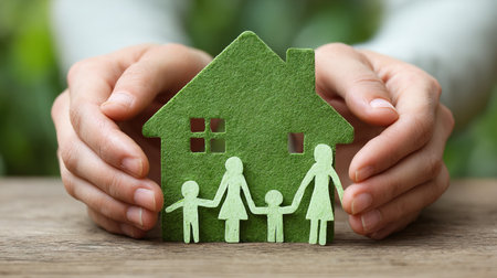Hands Holding Paper With Cutout Hands Protecting House Outdoors