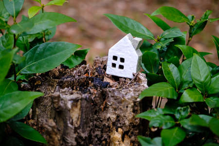 House in a nest in the forest. Eco housing, energy efficiency, zero carbon emissions. Building a house from natural environmentally friendly materials. Buying real estate. Engineering and design.