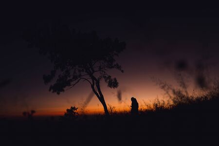 Beautiful sunrise,Silhouette peple with in sunrise, Thailand.