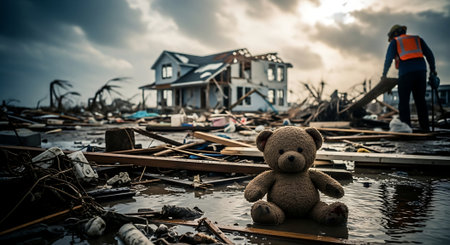 In the aftermath of a cyclone, wreckage litters the landscape, homes destroyed, emergency response critical
