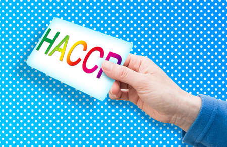 HACCP (Hazard Analyzes and Critical Control Points) - Food Safety and Quality Control in food industry concept with text and hand holding a card