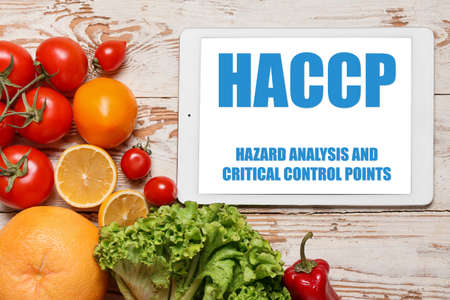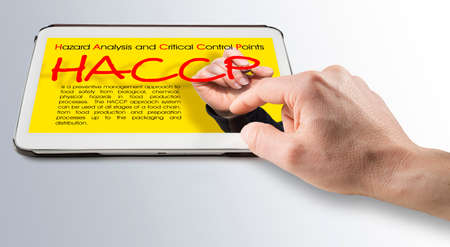 HACCP (Hazard Analyzes and Critical Control Points) - Food Safety and Quality Control in food industry concept image wit digital tablet.
