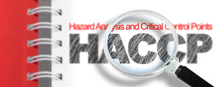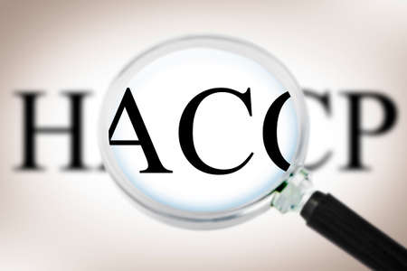 Focus on HACCP law - Hazard Analysis and Critical Control Points - Food Safety and Quality Control in food industry - concept with a magnifying glass