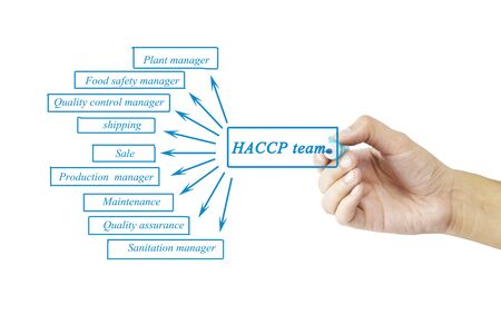 Women hand writing element of HACCP team for business concept and use in manufacturing(Training and Presentation)
