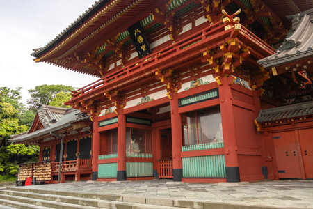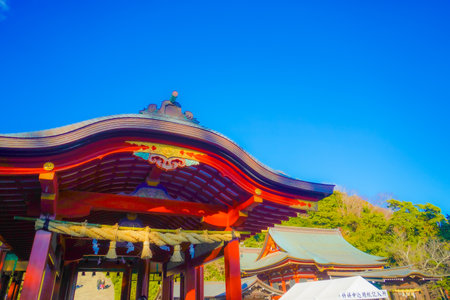 Kamakura, Kanagawa Prefecture, Greater Tokyo Area, Japan - The traditional architecture of the Tsurugaoka Hachimangu Shrine.