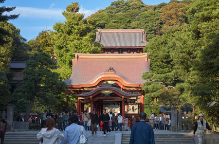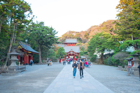 KAMAKURA , JAPAN - NOVEMBER 07, 2018: Tsurugaoka Hachimangu shrine, popular tourist attraction of Kamakura,Japan
