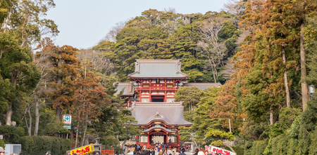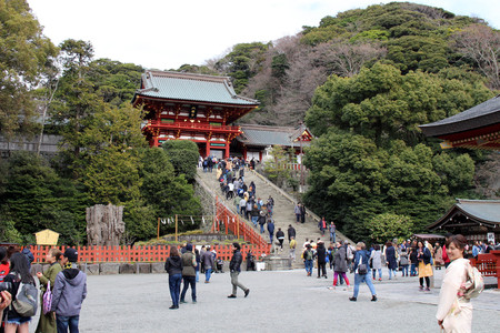 Kamakura, Japan - February 21, 2014 - View of the Tsurugaoka Hachiman-gū shrine, Kamakura, Japan