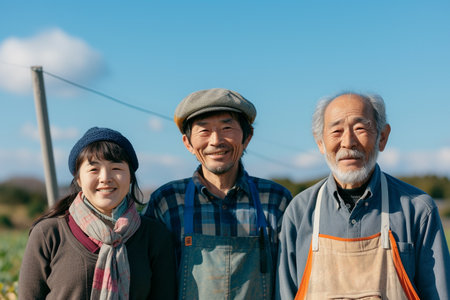 Portrait of an asian family standing in the field with blue sky