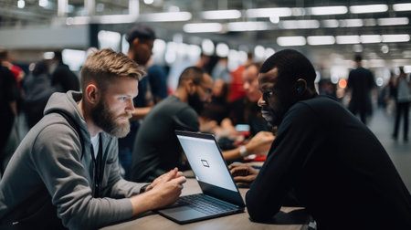 Programmers attending a tech conference, networking, and gaining inspiration from industry leaders. Copy Space