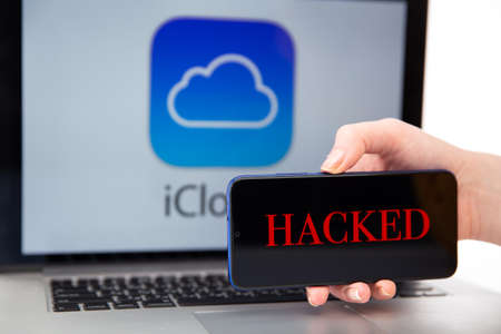 Tula Russia 12.02.2020 Hacked icloud on the phone and laptop concept.