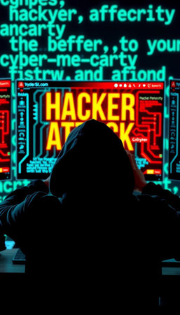 Hacker in front of a computer screen. Hacking attack concept