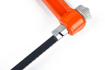 Hand hacksaw for metal on a white background