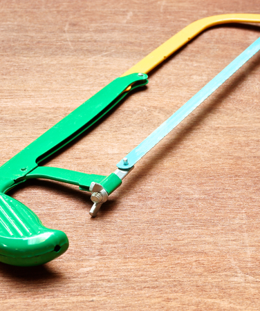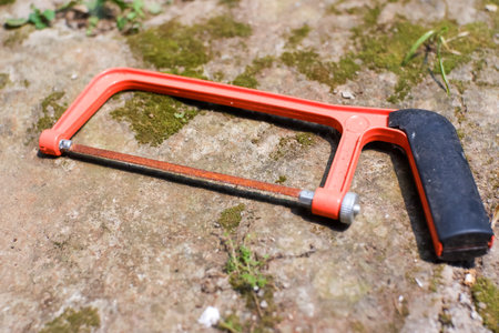 The hacksaw hand tool is placed on the ground