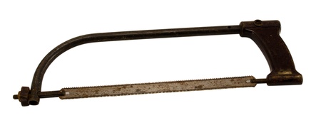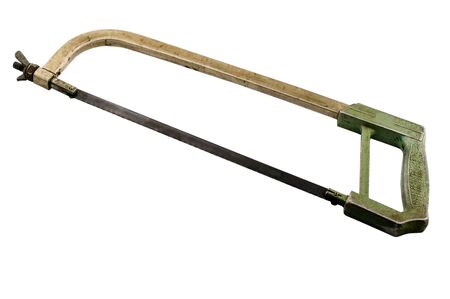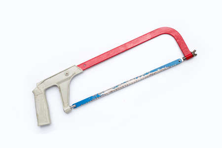 retro rusty hand hacksaw hack saw tool for metal cut isolated on white background