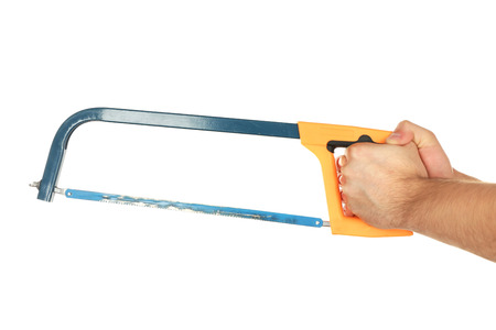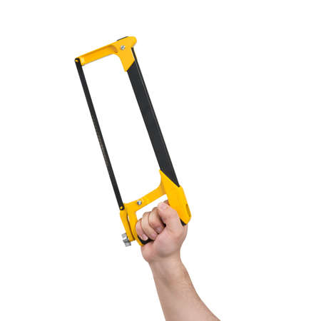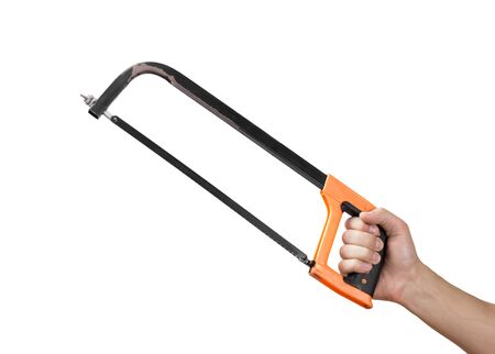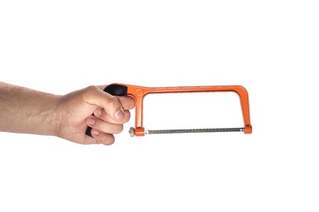 Hand holding a hacksaw with clipping path