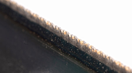 Closeup of dirty saw blade isolated on black