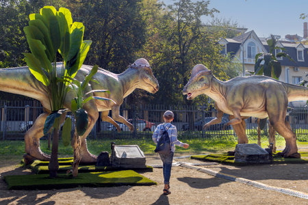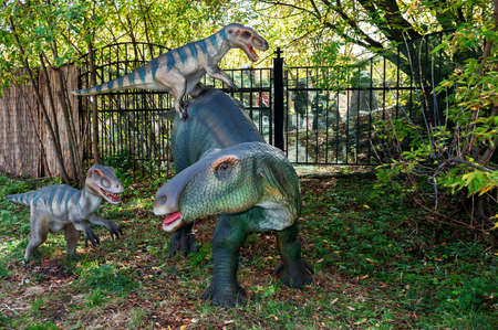 Amersfoort, the Netherlands - August 20, 2022: Dinosaurs in DierenPark outdoors