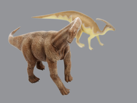 Parasaurolophus made out of plastic. dinosaur toy isolated on white background