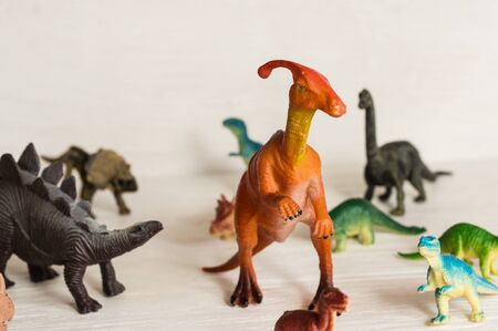 plastic dinosaur figures of extinct ancient creatures and favorite toys of kids