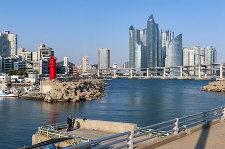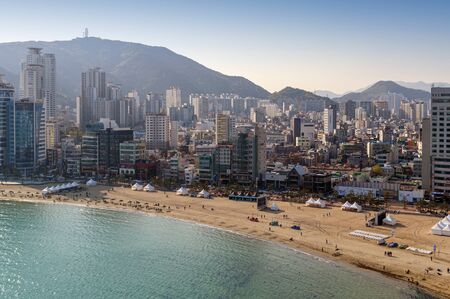 Busan Haeundae beach view in Busan, South Korea. Haeundae is a famous beach district in Busan. Taken on February 14th 2019