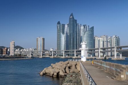 Marine city district behind Gwangan bridge in Busan, Republic of Korea
