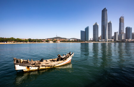 Busan, South Korea - April 2019: Cityscape view of coastal area of Busan at Gwangalli Beach, a popular tourist destination in Busan, South Korea