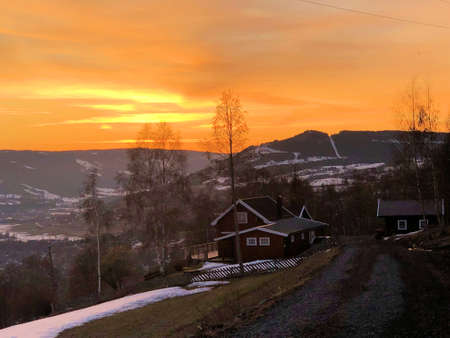 Incredible evening mood in Faberg near Lillehammer in Norway 19.4.2019