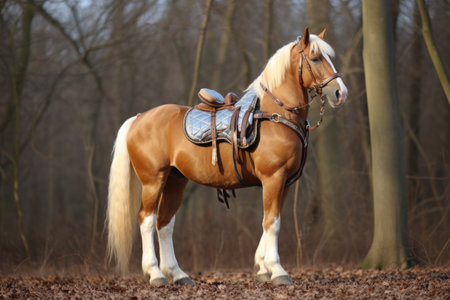a horse with a special adaptive saddle for para-equestrian use, created with generative ai