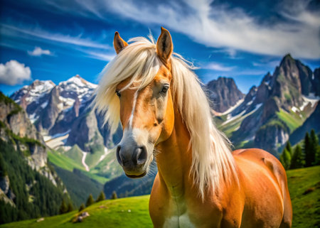 Majestic Haflinger Horse in the Austrian Alps: Stunning Mountain Portrait