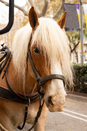 SAO BRAS DE ALPORTE, PORTUGAL - 4th MAY 2024: Period representation event of Carriage coupling traditional event with beautiful carriages with horses and person dressed for the occasion.