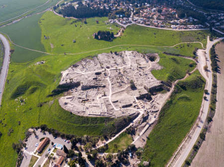 Megiddo national park in Israel. Archeological site of biblical Tel Megiddo also known as Armageddon the end of the world.