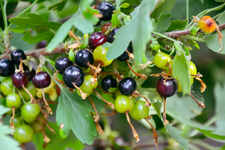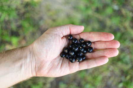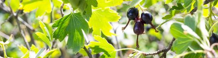 Currant plant. Berries background. Black currant. Countryside. Harvest. Fresh organic berry. Village garden. Desserts, smoothie or jam ingredient.