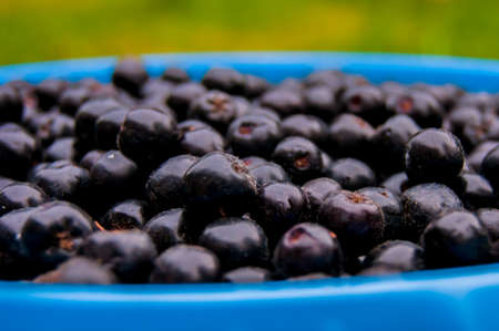 Harvesting berries. Blue honeysuckle is an early berry with an extremely high concentration of anthocyanins and flavonoid pigments. .