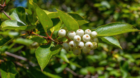 The Chokeberry in summer, Bright sunlight pierces dense foliage, the air feels hot, natural color
