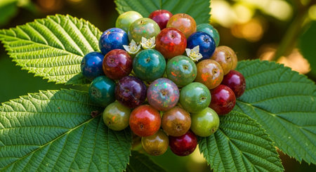 Black raspberry Rubus occidentalis of berries ripening closeup