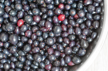Freshly picked ripe berries of honeysuckle and red currant close-up