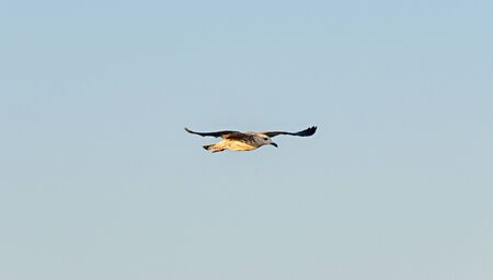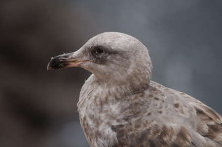 Closeup of young seagull at the Ring of Kerry, Ireland. Portrait of a sea gull sitting on a pier.