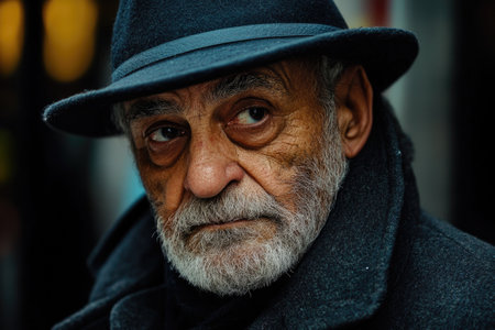 Close-up portrait of an elderly gentleman wearing a hat and coat, conveying wisdom and experience