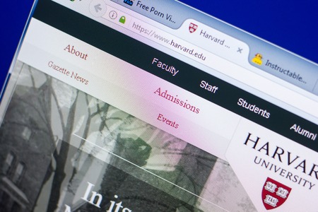Ryazan, Russia - May 08, 2018: Harvard website on the display of PC, url - Harvard