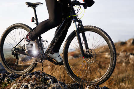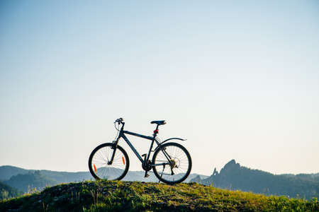 Bike on the mountain at sunset. Sport and active life concept