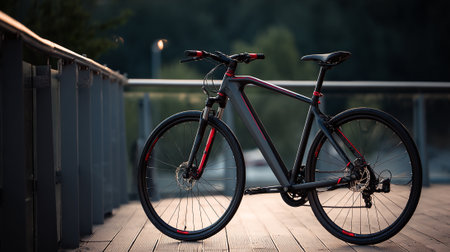 Bicycle on a wooden bridge in the evening. Selective focus.