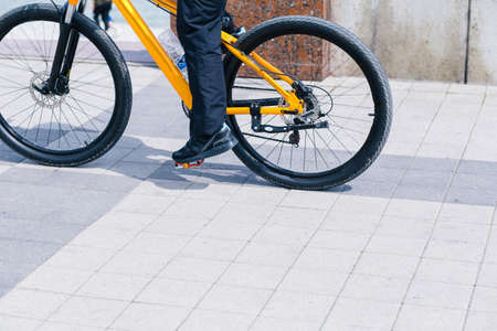 Guy riding a bmx bike on the street. Freestyle BMX in the city, extreme sports concept