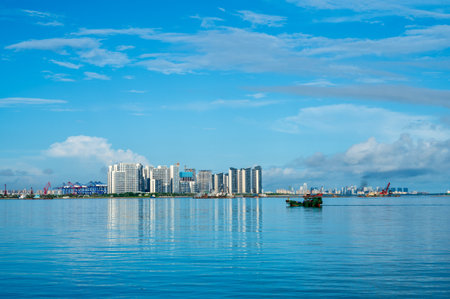 Aerial view of Cityscape with blue sky and buildings in Haicang New District, Xiamen City, Fujian Province