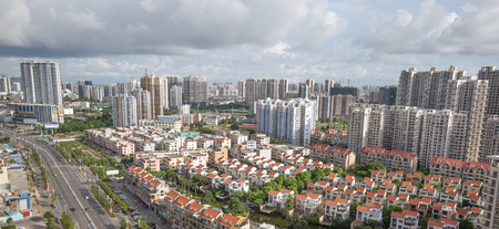 View of the residential area from the municipal houses in a picturesque place, Shenzhen, China, Asia