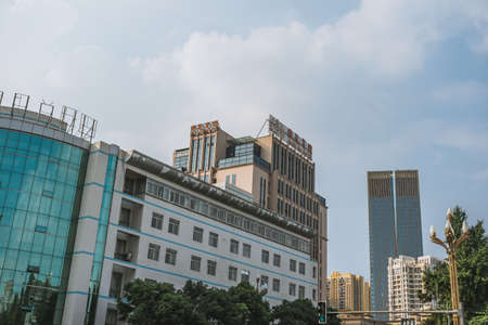 Chengdu, China - July 2019 : High commercial and residential buildings and blocks of flats