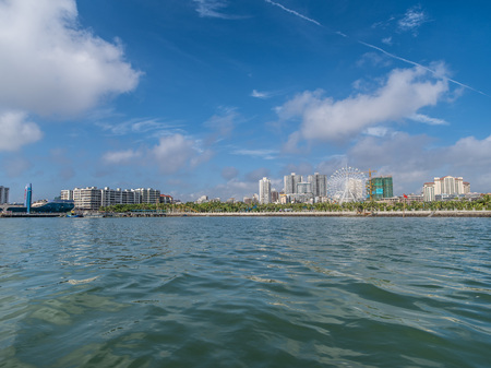 Sanya, China - June 27, 2017: Beautiful Sanya Bay and Phoenix Island, is a landmark Sanya.