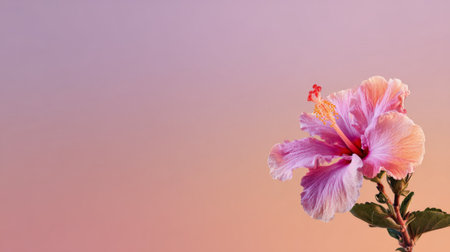 Stylized branches with lush leaves exhibit a beautiful color gradient, reflecting shades of green and pink. This artistic representation captures a serene atmosphere.